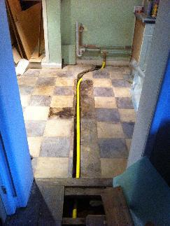 A retro themed decorative gas fire installation in Aldershot and a upsized, below ground gas line in West Byfleet -